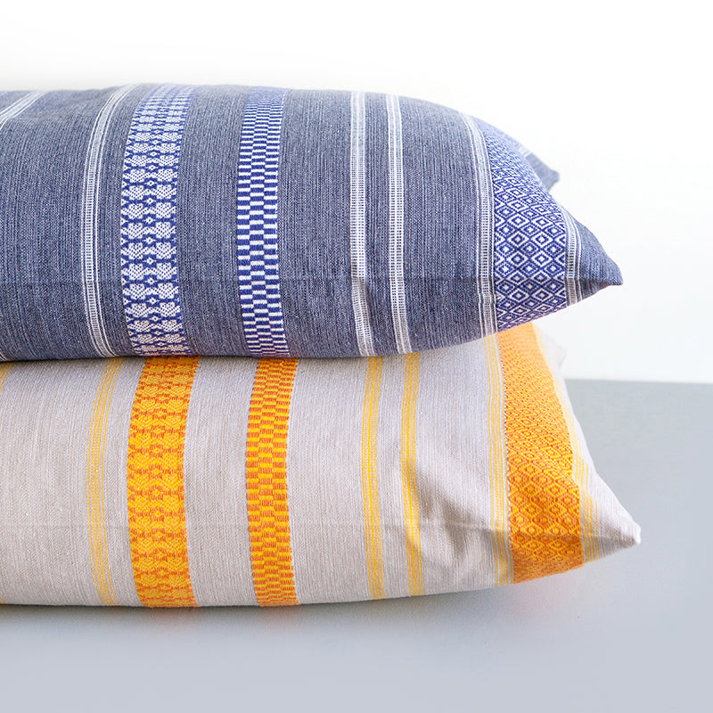 Rich in pattern and texture, the Mungo Mali Cushion Covers are inspired by the lateral geometric patterns of the famous West African strip cloth.