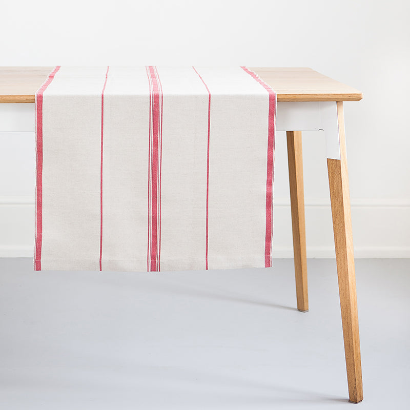 The Lisburn Linen Table Runner is woven at the M Mill with a cotton weft and linen warp on our refurbished 1960's Ruti shuttle looms. One of the key characteristics that differentiates the vintage shuttle looms from more modern weaving machinery is their ability to weave a true selvedge (a self-finished edge that prevents the fabric from fraying or unraveling). We think the selvedge is an iconic feature on the Lisburn Linen range and have left it exposed on the table runner as an aesthetic detail.