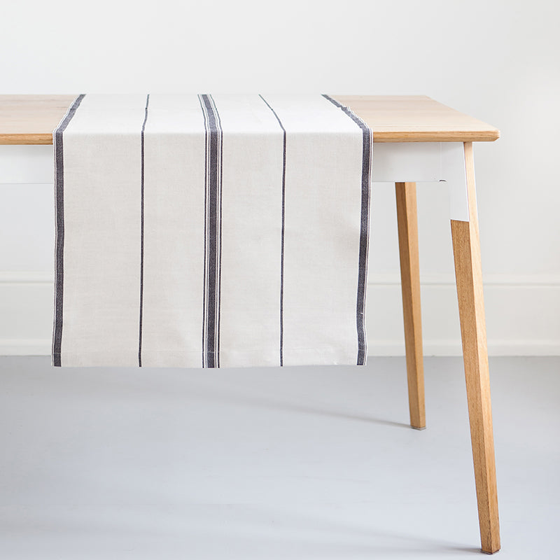 The Lisburn Linen Table Runner is woven at the Mungo Mill with a cotton weft and linen warp on our refurbished 1960's Ruti shuttle looms. One of the key characteristics that differentiates the vintage shuttle looms from more modern weaving machinery is their ability to weave a true selvedge (a self-finished edge that prevents the fabric from fraying or unraveling). We think the selvedge is an iconic feature on the Lisburn Linen range and have left it exposed on the table runner as an aesthetic detail.